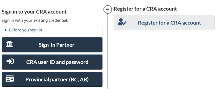 - Use your CRA credentials or a Sign-In Partner (like your bank).